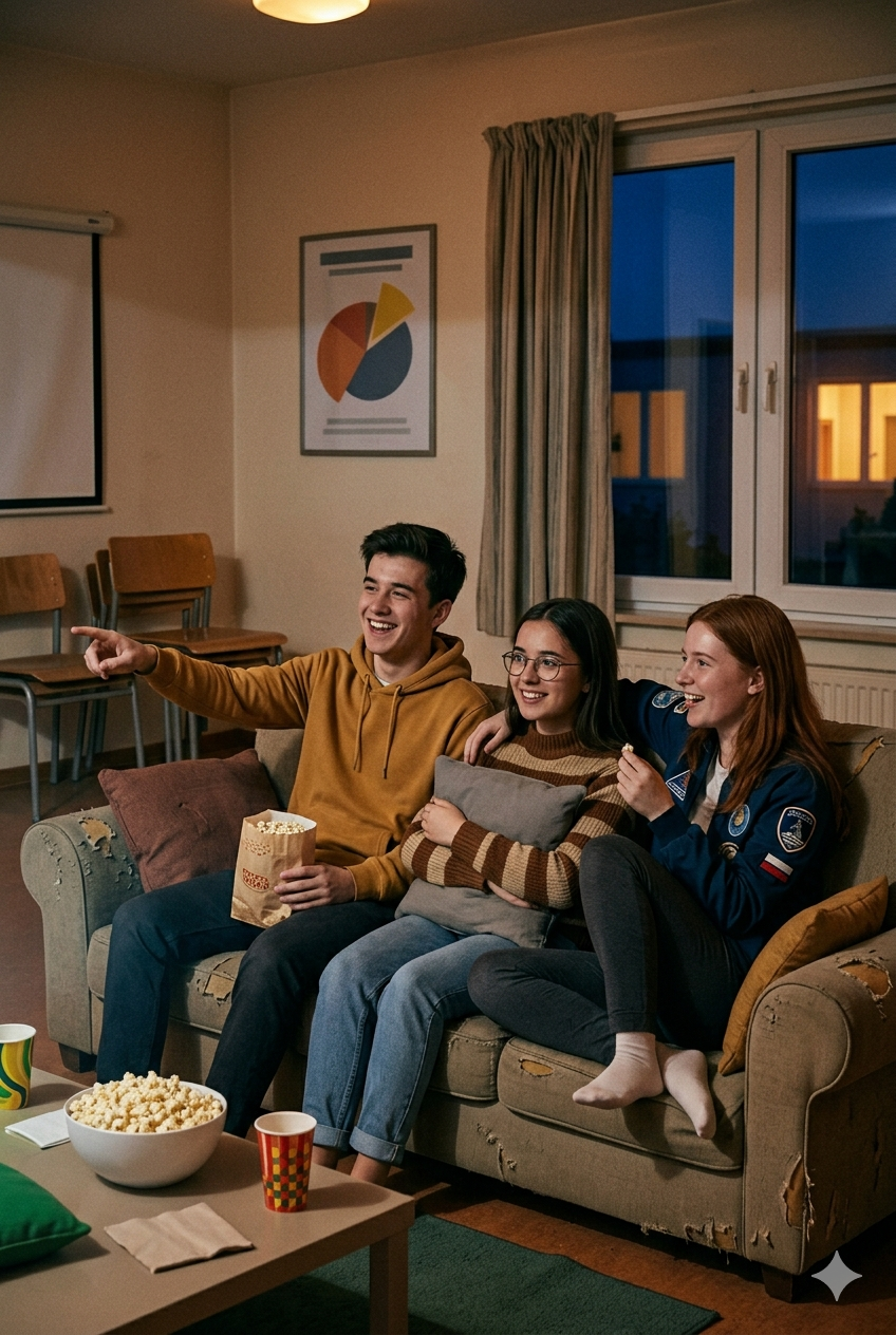 Under en vanlig kväll sitter några ungdomar i soffan och pratar om att de vill se film tillsammans. De frågar personalen om de kan använda projektorn.