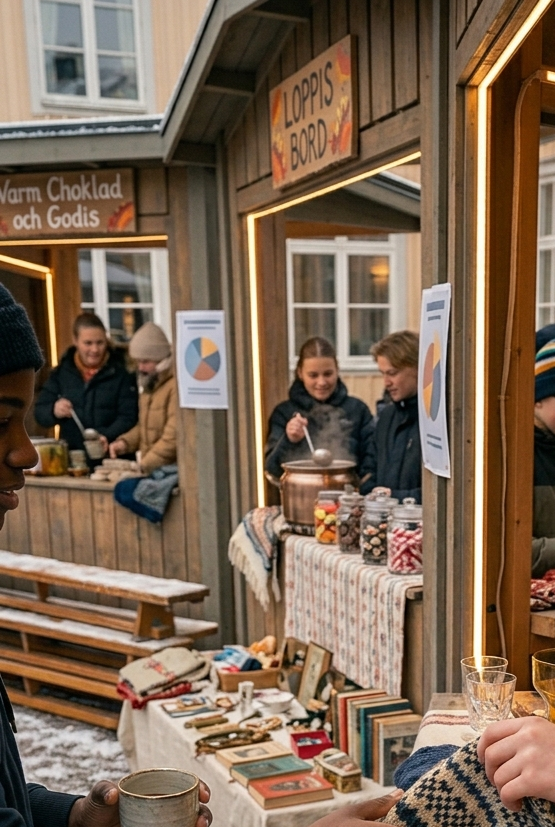 Efter några veckor ordnar de en aktivitet på torget en lördag. De har förberett försäljning, samlat material och spridit information. Under dagen hjälper även syskon, kompisar och några föräldrar till med praktiska uppgifter. Personalen har stöttat med coachning, kontakt med kommunen och transport av material.