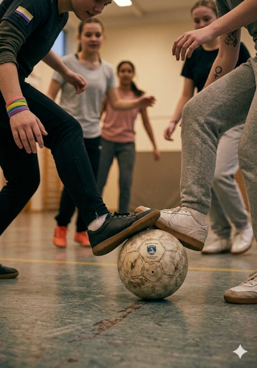 Efter en stund tycker Amina att det blir segt och frågar Juno om de ska spela fotboll. Snart är de ungefär åtta ungdomar som spelar tillsammans.